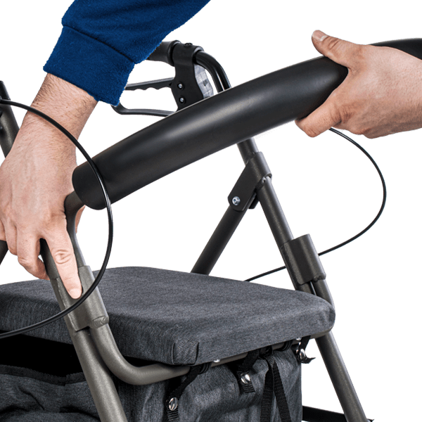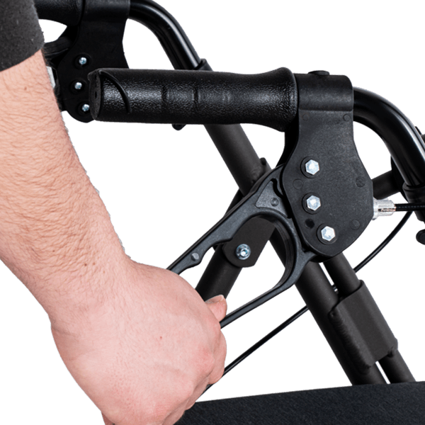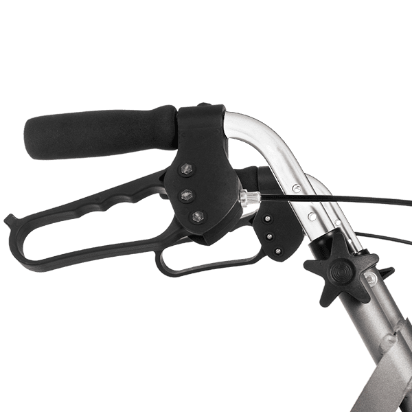 El andador 4200 XL está equipado con frenos de maneta, que cuentan con dos frenos manuales en las empuñaduras para un control preciso al frenar. Además, el andador se puede bloquear fácilmente al bajar la maneta hacia abajo.