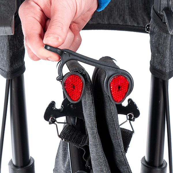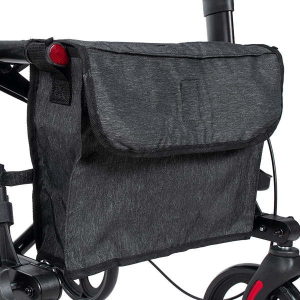 El andador está equipado con una cómoda cesta de tela opaca con una capacidad de 10 litros, ideal para transportar objetos de hasta 5 kg. Fabricada en nailon, cuenta con un cierre de velcro y una correa ajustable que facilita su extracción y transporte separado.
