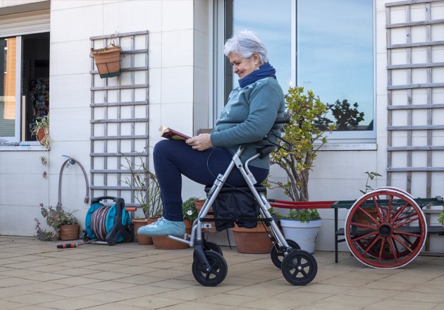 Con este andador podrás tener apoyo para caminar en espacios exteriores e interiores. Con freno de maneta en cada puño. Su función de “silla de ruedas” te permitirá sentarte a descansar en caso de necesitarlo. Su asiento y su respaldo son acolchados. Además, el andador lleva incorporado un reposapiés con el fin de brindarte mayor comodidad durante tus recorridos. Si vas al supermercado, no te preocupes por llevar la bolsa, este andador lleva una cesta dónde podrás meter tus compras. Sólo pesa 8,2 kg y resiste hasta 100kg.