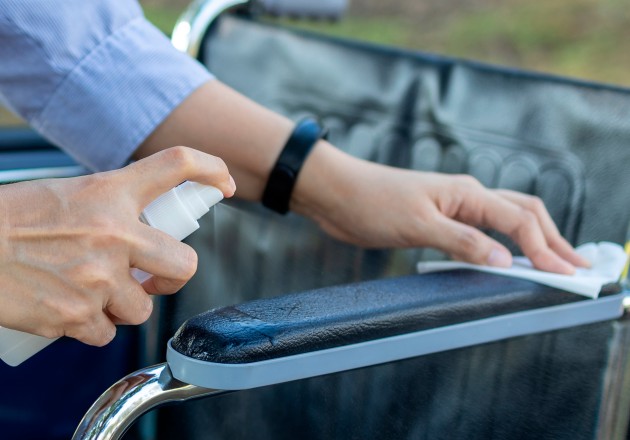 La limpieza y desinfección de la silla de ruedas es fundamental para prolongar la vida útil de esta. Antes que nada, cabe destacar que no es lo mismo limpiar que desinfectar. Limpiando quitamos la suciedad sin eliminar los bacterias o virus. La desinfección es lo que hace que estos desaparezcan. Ambas acciones son