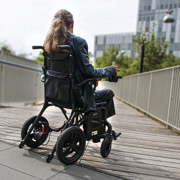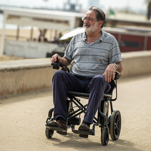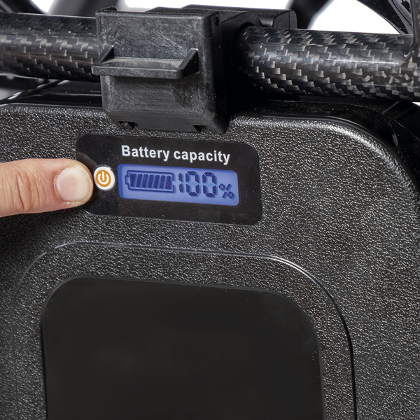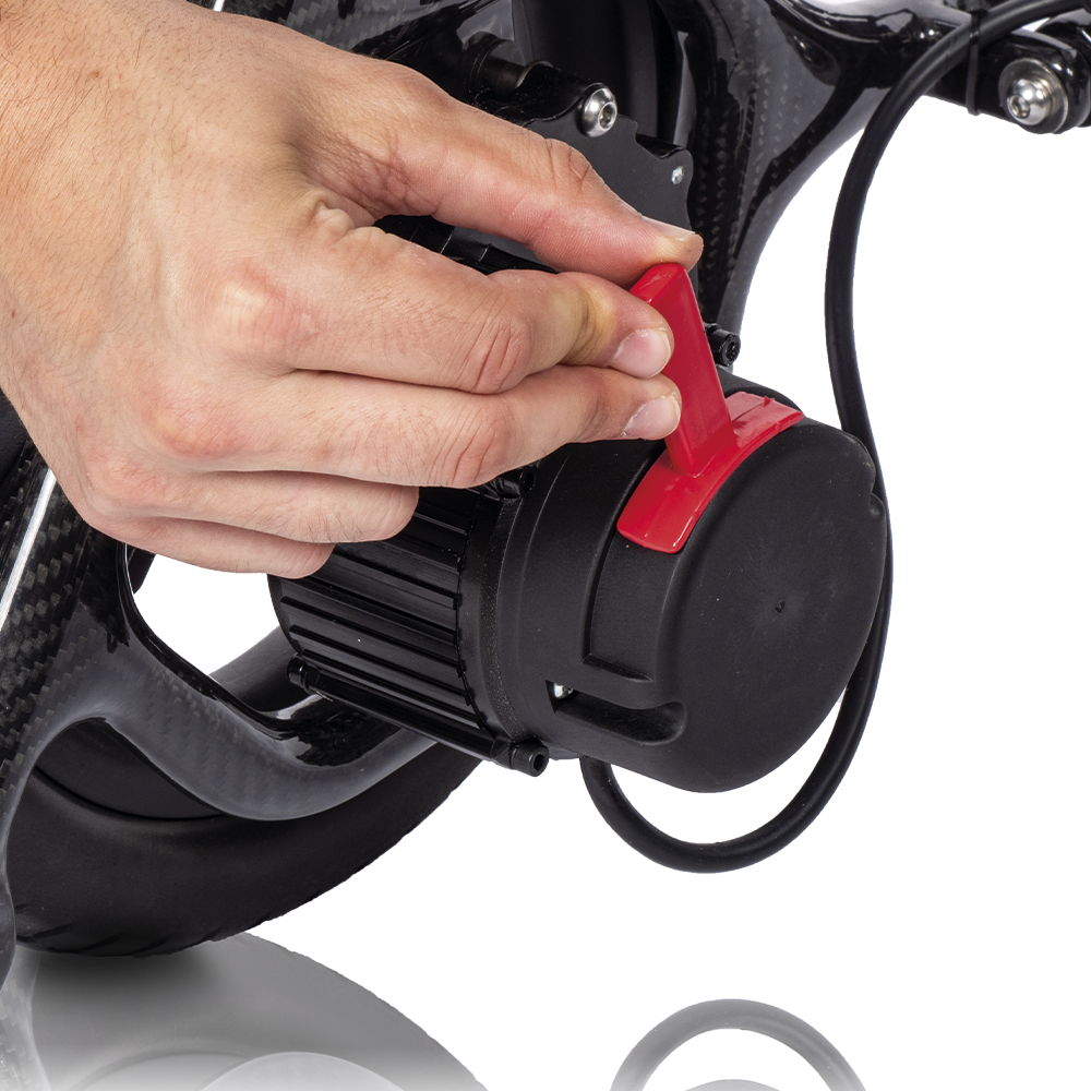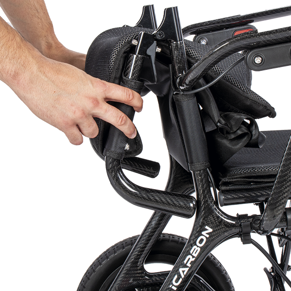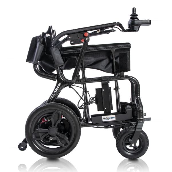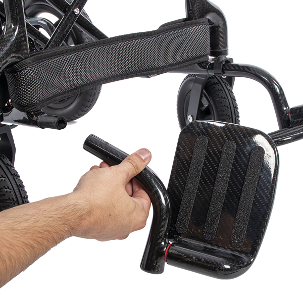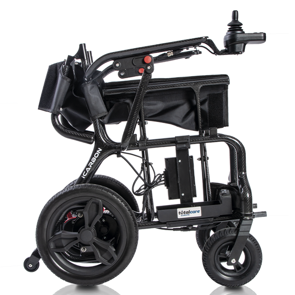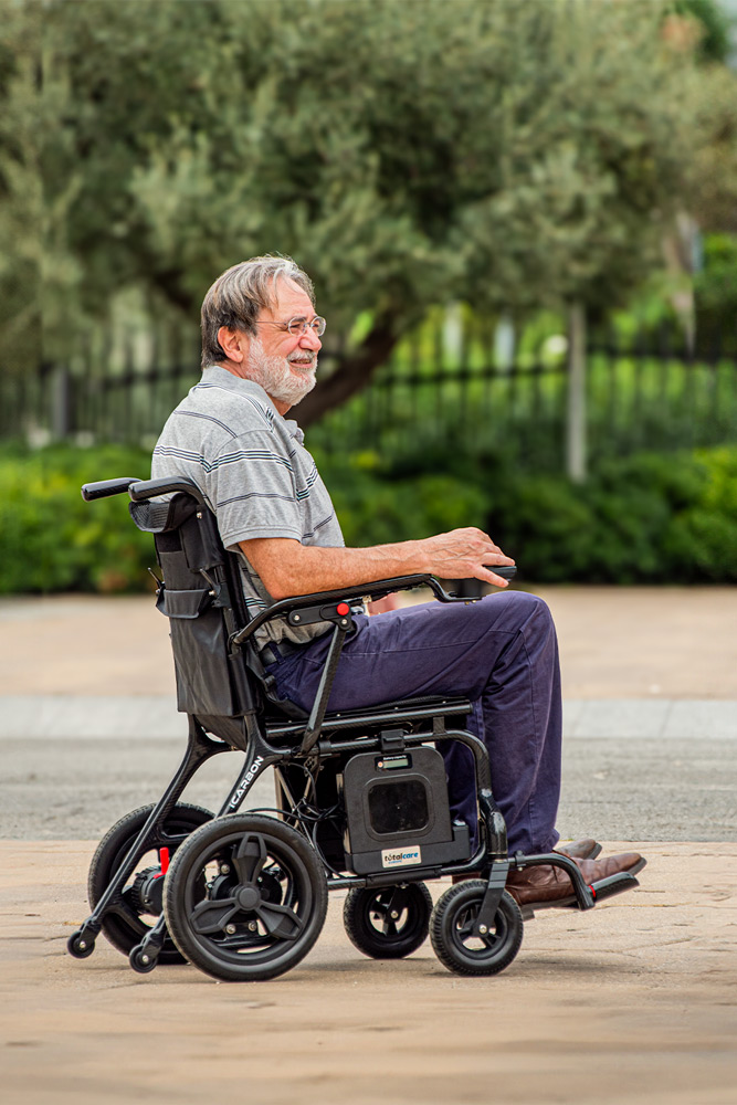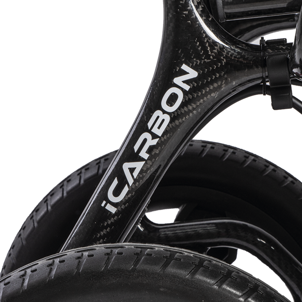 La iCarbon, fabricada en fibra de carbono, sorprende con su peso de tan solo 13,7 kg (sin batería). Esta silla, destaca por su diseño compacto, su peso ultraligero y sus acabados de alta calidad.