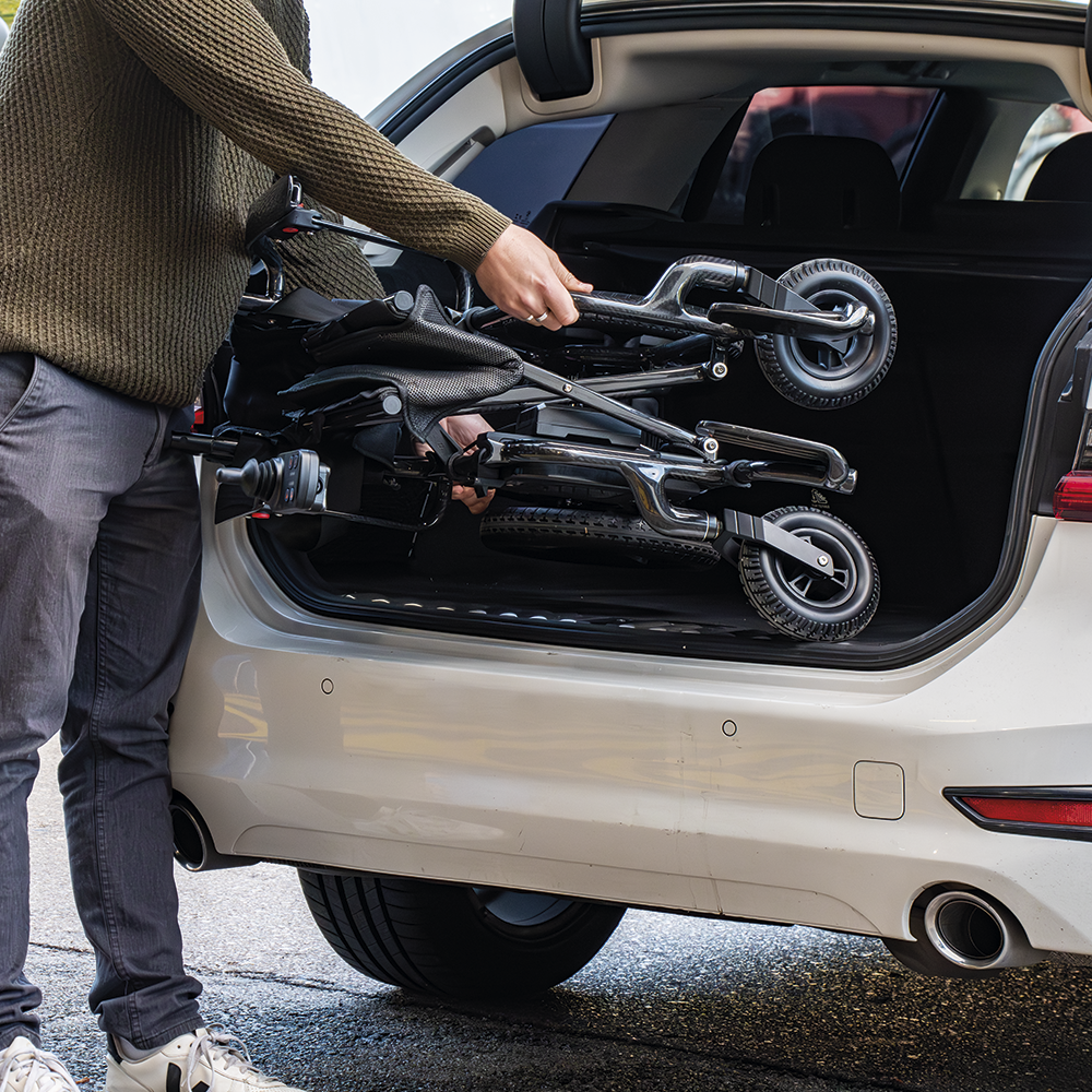 La iCarbon es perfecta para la movilidad en espacios reducidos gracias a sus dimensiones compactas (55 cm de ancho y 74 cm de profundidad) y su reducido radio de giro de 90 cm. Esto garantiza una perfecta circulación en áreas estrechas tanto en interiores como en exteriores.