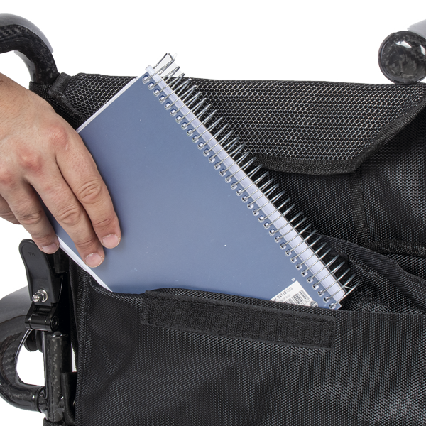 Incluye una bolsa para guardar objetos, de 30 cm de ancho por 24 cm de alto. Está equipada con un cierre de velcro