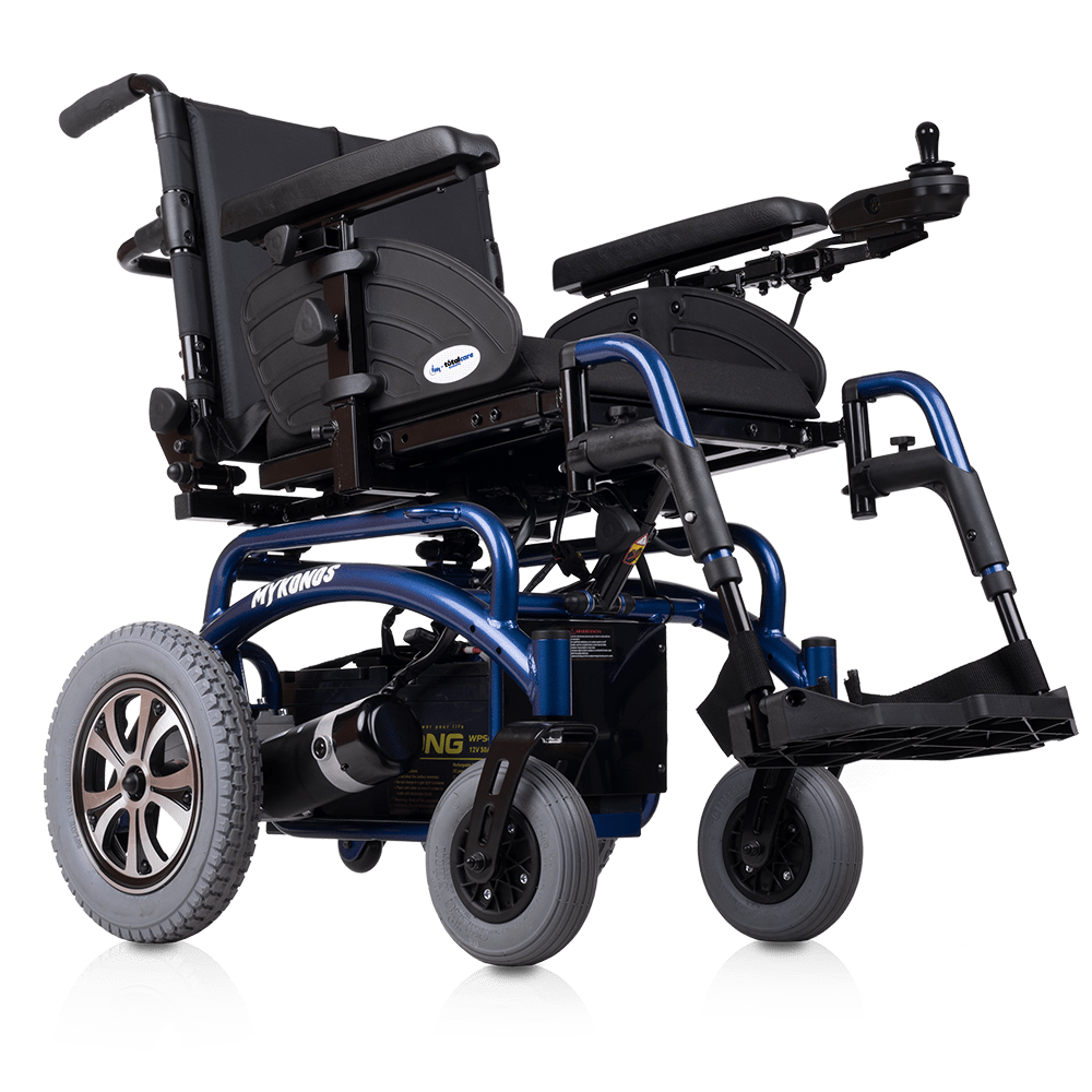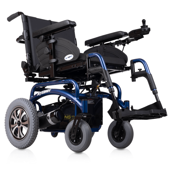 La silla Mykonos II cuenta con un chasis compacto que le proporciona una gran versatilidad y agilidad. Es la silla más estrecha de su gama, con una anchura máxima de 58 cm y una longitud total de 104 cm. La anchura y profundidad del asiento son personalizables, con opciones que van desde los 35 hasta los 48 cm. Los reposapiés son ajustables en altura y abatibles, y el respaldo se puede ajustar en altura según las preferencias del usuario.