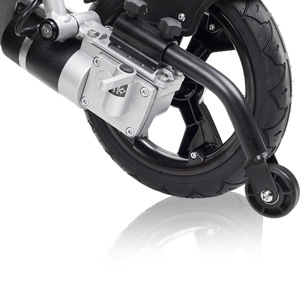 La Kittos Travel cuenta con un sistema de desconexión de motor que se activa mediante dos palancas. Al desconectar los motores, la silla se desembraga, lo que facilita empujarla manualmente sin ningún tipo de resistencia eléctrica.