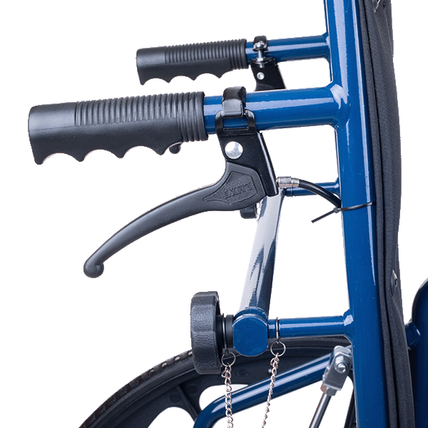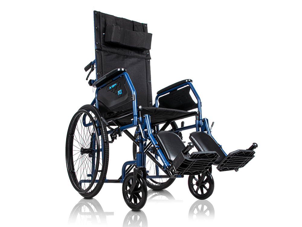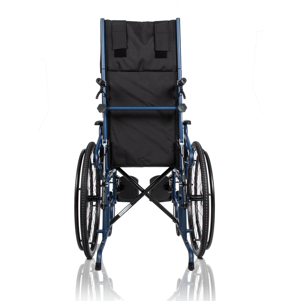 Una característica destacada de esta silla es su sistema de respaldo reclinable hasta 180º, diseñado para adaptarse a las necesidades del usuario. La inclinación del respaldo se ajusta fácilmente mediante las manetas ubicadas en los puños, permitiendo una personalización óptima de la posición para mayor comodidad.