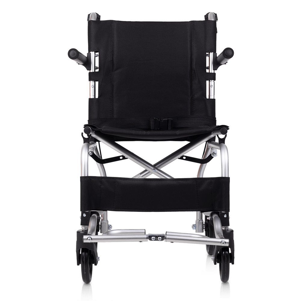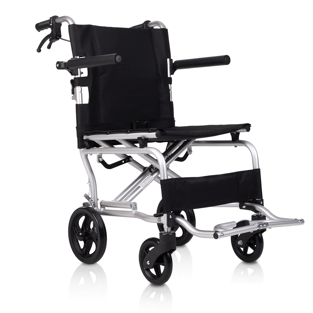 Es una silla de ruedas de transferencia especialmente diseñada para uso en interiores, gracias a sus medidas ultra compactas. Con un ancho total de 47,5 cm en la talla de 40 cm y 51,5 cm en la talla de 44 cm, es perfecta para transportarla cómodamente a cualquier lugar.